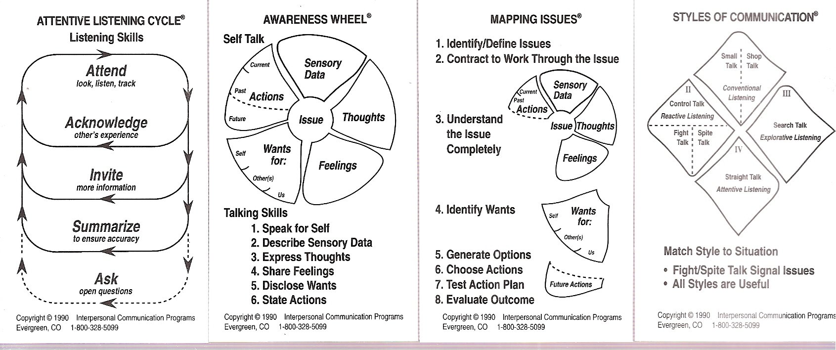 Oh listening IS so important! I am so grateful for the Couple Communication class that the High Priest in my life and I had the priviledge of learning because we were in the right time at the right place to have the Lord bless our life with a free, perfectly timed class intended for another, but perfect for us! We have often recognized the tender mercy of that 6 week training in our lives! It changed our lives forever! We have sought to recreate that experience for others without success! The fact that a teacher was brought free of charge to the office Brad was working in just before we departed to law school across the country was NO small miracle! It saved our marriage over and over again over those three hard years in Tennessee! It changed our lives! The lessons learned there bless our lives and the lives of our posterity today! I testified and shared principals of that training this very week in both my Family Relations group discussion, and in my University Studies team project this very week! Indeed the use of all of these great principals has blessed my life! I am so glad I had the opportunity to learn this material: